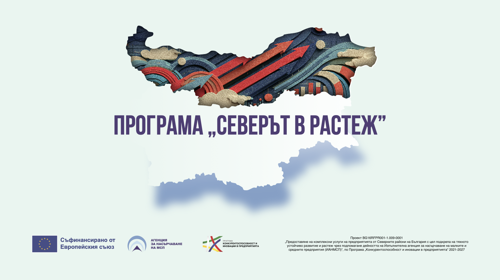 Проект № BG16RFPR001-1.009-0001 „Предоставяне на комплексни услуги на предприятията от Северните райони на България с цел подпомагане на тяхното устойчиво развитие и растеж чрез съдействие от Изпълнителната агенция за насърчаване на малките и средните предприятия (ИАНМСП)“ се изпълнява от Изпълнителната агенция за насърчаване на малките и средните предприятия (ИАНМСП).